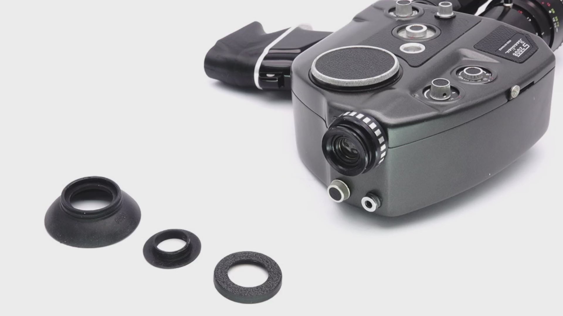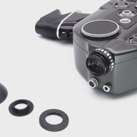 The original eyecups of old Super-8 cameras often hardened or were lost over the decades. This replacement made of soft rubber simply screws onto the viewfinder thread. It effectively shields ambient light so you can judge the viewfinder image with high contrast and clarity – essential for precise focusing.