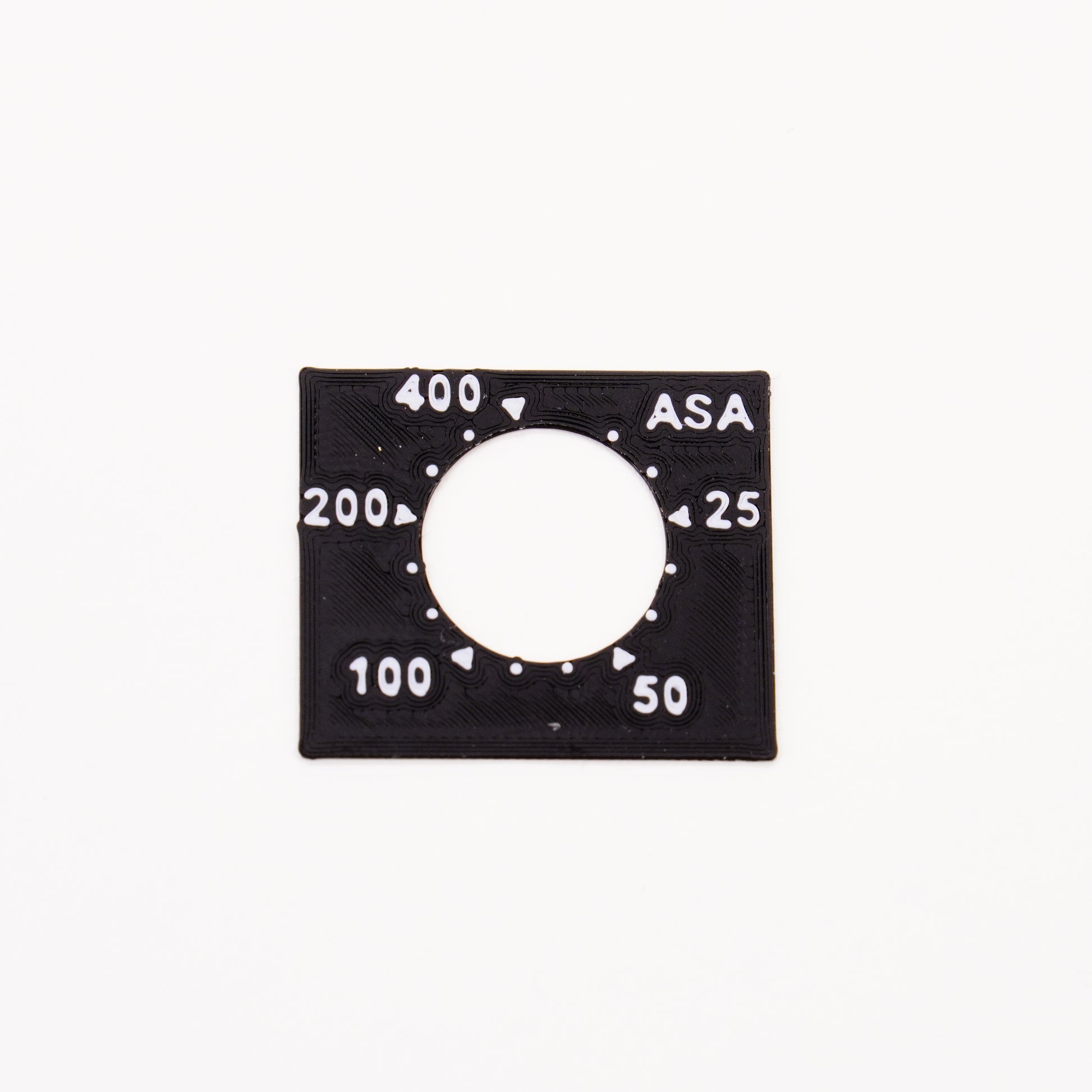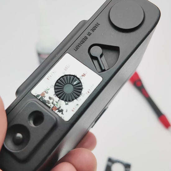 Anyone using a Minox 35 knows the phenomenon: the printed ISO numbers on the adjustment dial fade over time. We have created a lasting solution. By manufacturing from two differently colored plastics, the digits are inseparably connected to the plaque. No wear, no fading. The old disc is simply removed and the new one fixed with a tiny drop of superglue.