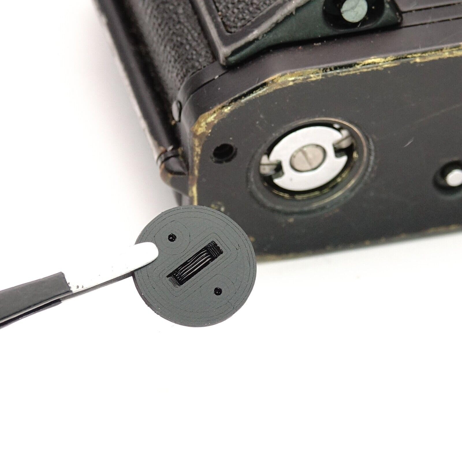 - Lost the original cap? High-quality replacement for the cover of the winder connection on the camera base.