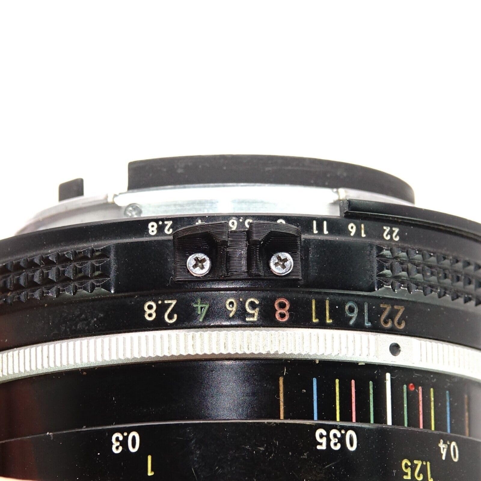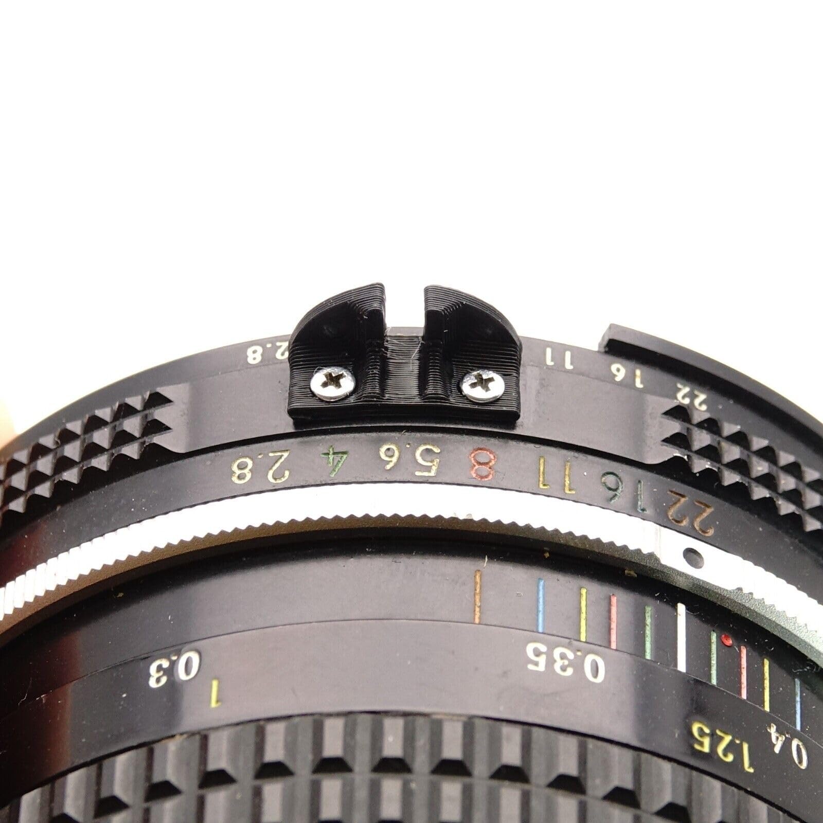 Esta pieza reemplaza la característica horquilla de acoplamiento del diafragma, más conocida como "orejas de conejo", en los primeros objetivos Nikon Nikkor (Pre-AI / Non-AI). Establece la conexión mecánica con el vástago del medidor de exposición en cámaras clásicas como la Nikon F (Photomic), F2 (Photomic) o la serie Nikkormat. La pieza está diseñada exclusivamente para la medición de exposición y asegura que tu cámara vintage reconozca correctamente el diafragma ajustado.