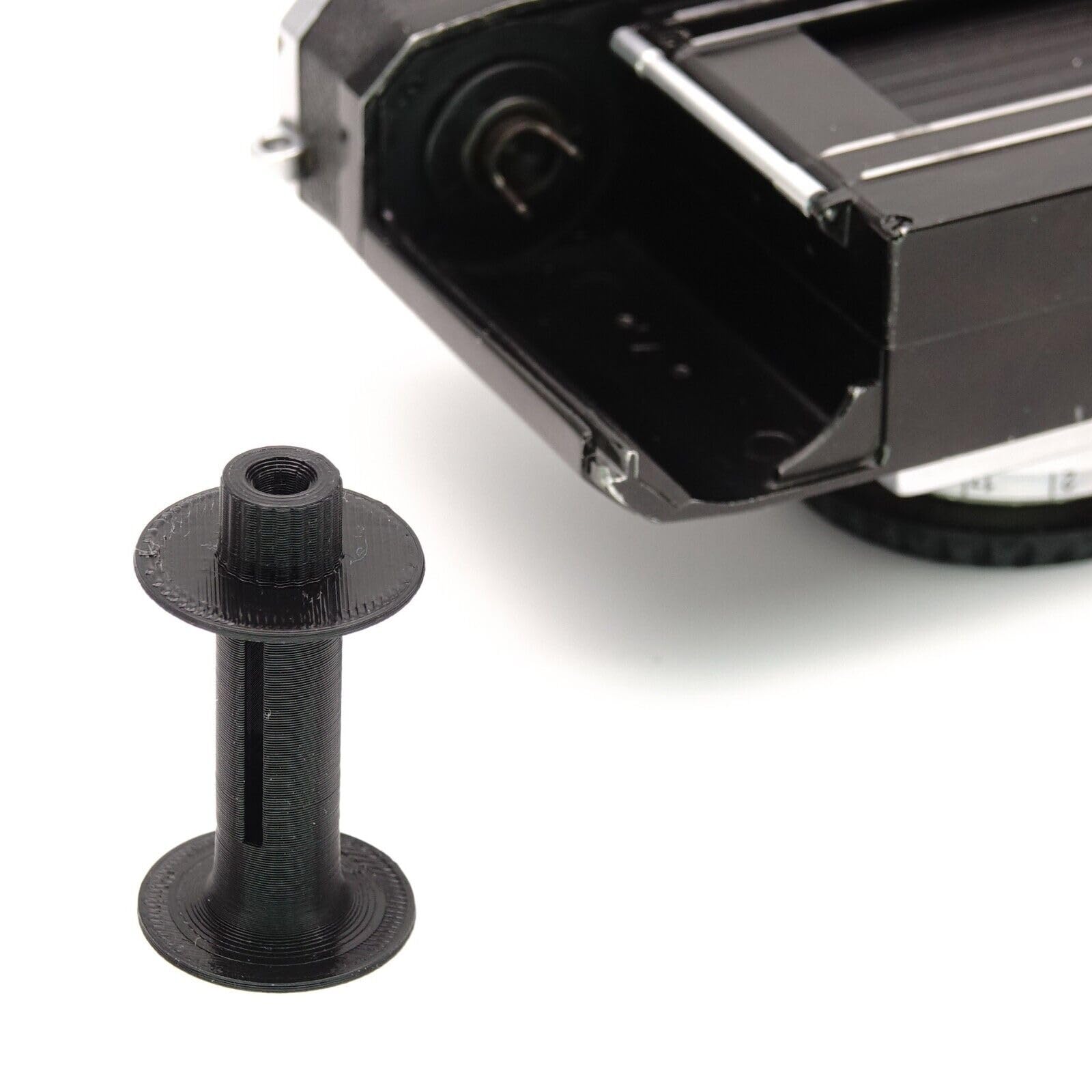 Finalmente hai tra le mani quella splendida Contax o Kiev, l’otturatore funziona, ma quando inserisci la pellicola ti accorgi: manca la bobina! È il classico problema di queste macchine, perché le bobine sciolte durante il cambio pellicola tendono a cadere e a perdersi. Per evitare che la tua macchina resti inutilizzata sullo scaffale, abbiamo progettato questa bobina di riavvolgimento.