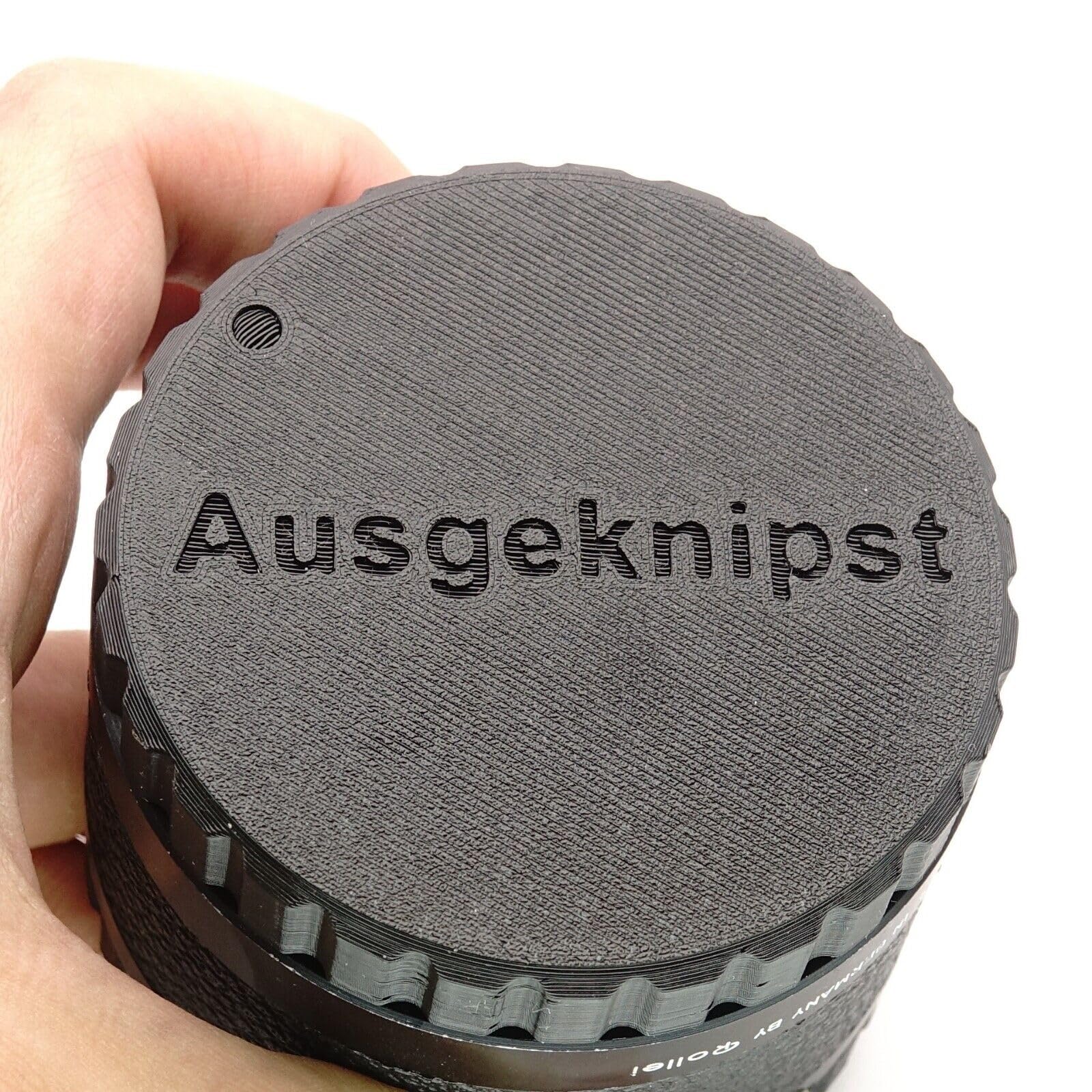 Questo tappo posteriore per obiettivo è progettato su misura per la baionetta della serie di obiettivi Rollei SL66. Che si tratti di Zeiss Distagon, Planar o Sonnar – il tappo in plastica tecnica (PLA+) si adatta saldamente e protegge l’elemento posteriore delicato.